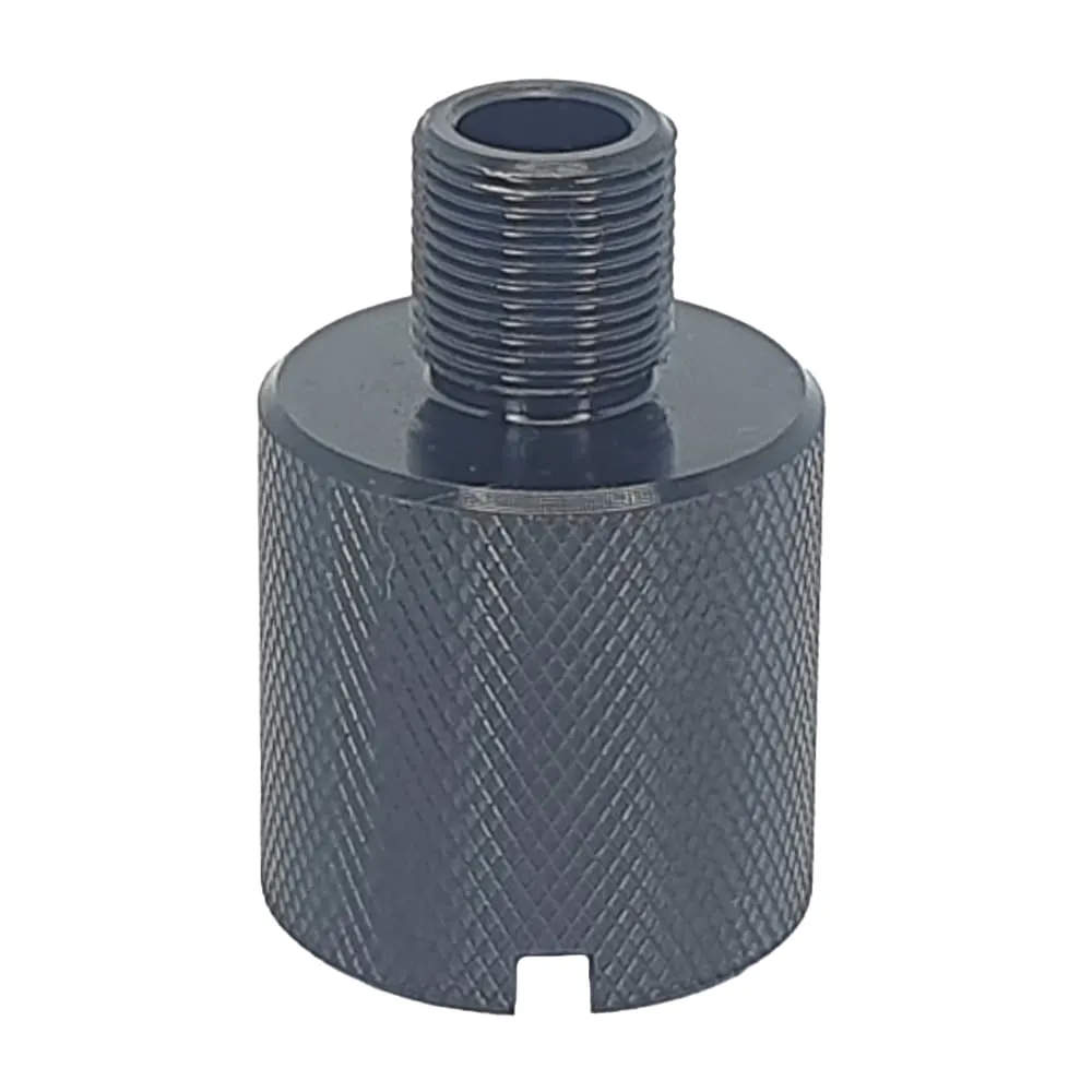 Адаптер для глушителя от изготовителя Мастерская Дайса изготовлен прочной стали с воронением. Переходник с резьбы М24+ на М14-, в основании расположены два паза для фиксатора.