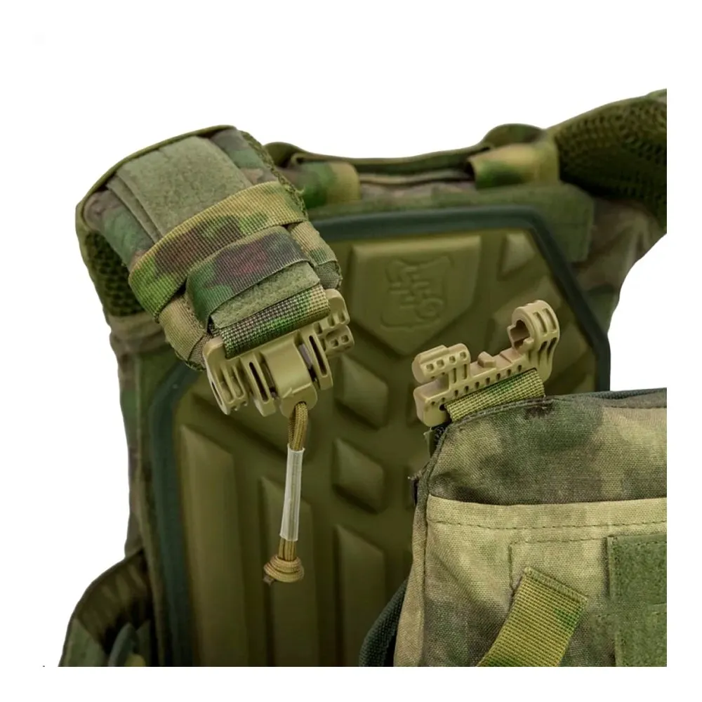 На внутренней части передней и задней панели, а также на камербандах есть липучка для крепления климатических амортизационных подпоров. КАП в комплект не входят! В нижней части передней и задней панели есть петли для крепления противоосколочной защиты низа живота и области паха.