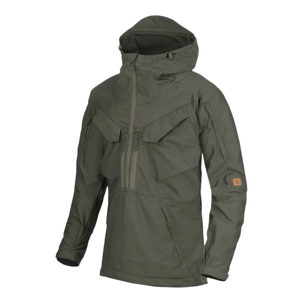 Многочисленные карманы позволят удобно разместить оборудование, а их характерное расположение позволит сделать их постоянно доступными, даже при работе в сидячем положении или на коленях. Удлинена вся конструкция куртки, благодаря чему она защищает тело независимо от оборудования, которое носится. Опустив карман ‘кенгуру’, удалось удлинить переднюю молнию куртки, что позволяет пользователю лучше проветривать свое тело во время напряженных подходов или работы.