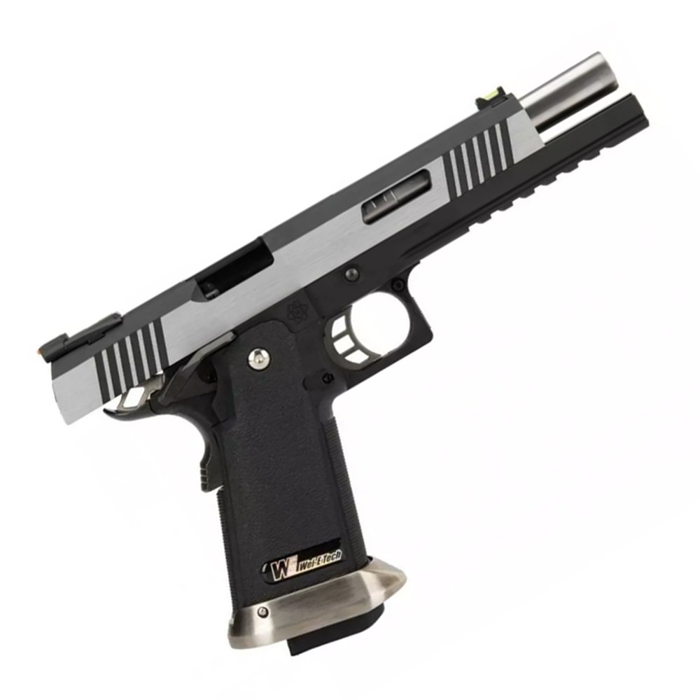 Страйкбольная модель Hi-Capa 6.0 Two Tone от производителя WE Airsoft, с серебристой рамкой.