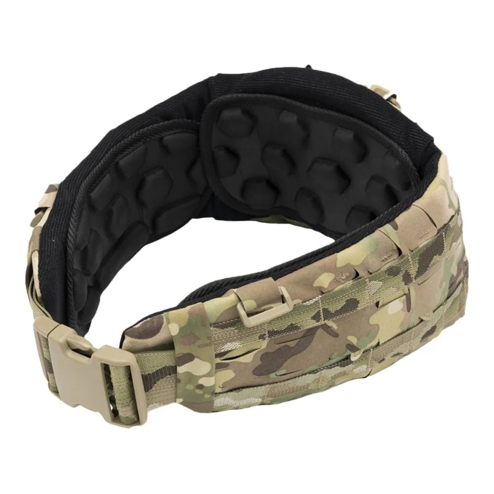 Пояс изготовлен с применением технологии LC - Laser Cut в комбинации с обычной MOLLE-системой. Эта технология обеспечивает прецизионно точный крой для максимального качества готового изделия и сохраняет надёжность изделия в долгосрочной перспективе. Ламинатная ткань обладает высокой прочностью и устойчивостью к механическим повреждениям, стропа же повышает интуитивность использования и продлевает общий срок жизни изделия.