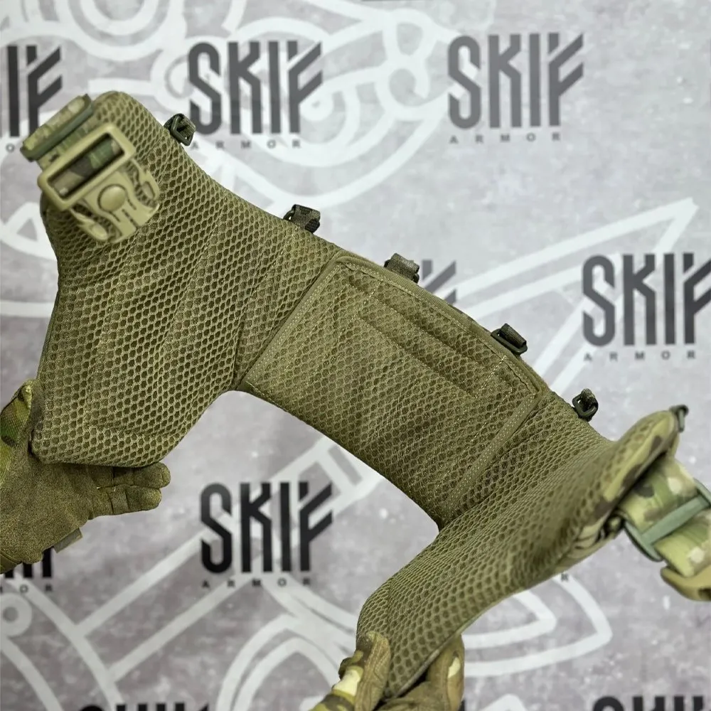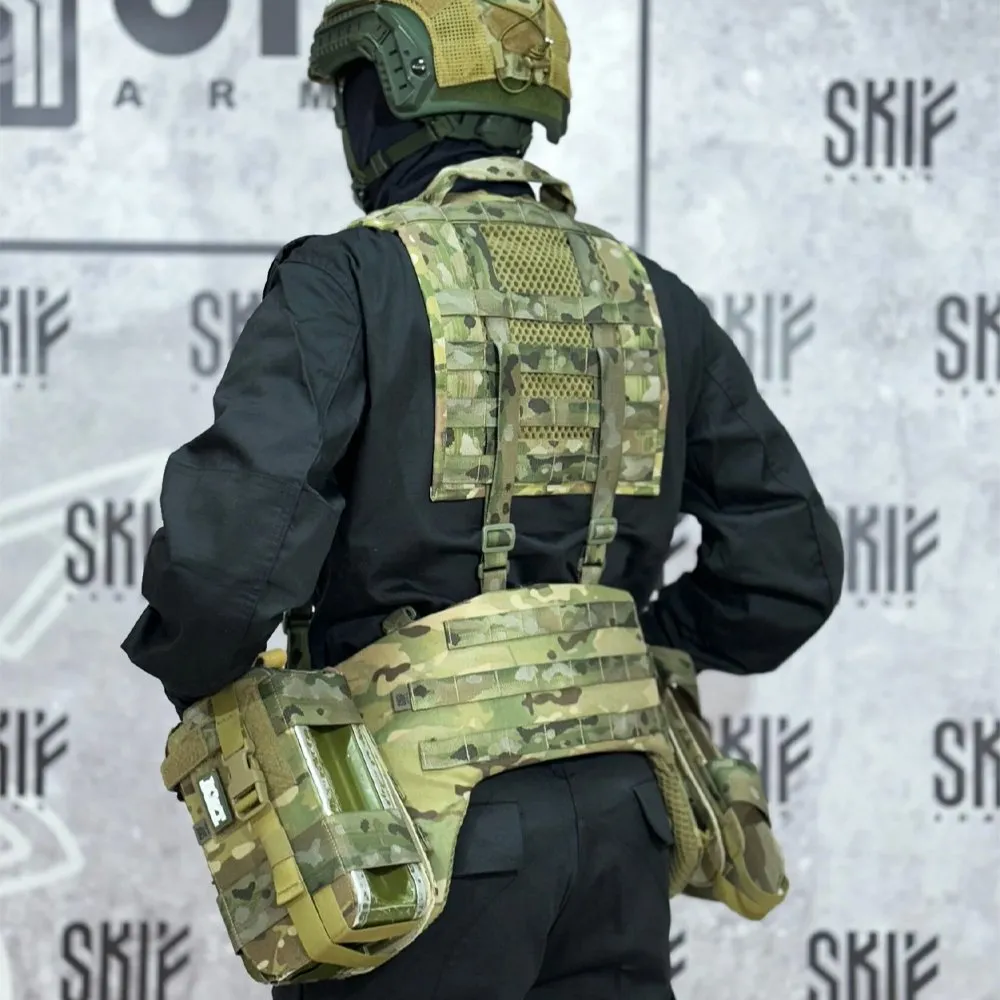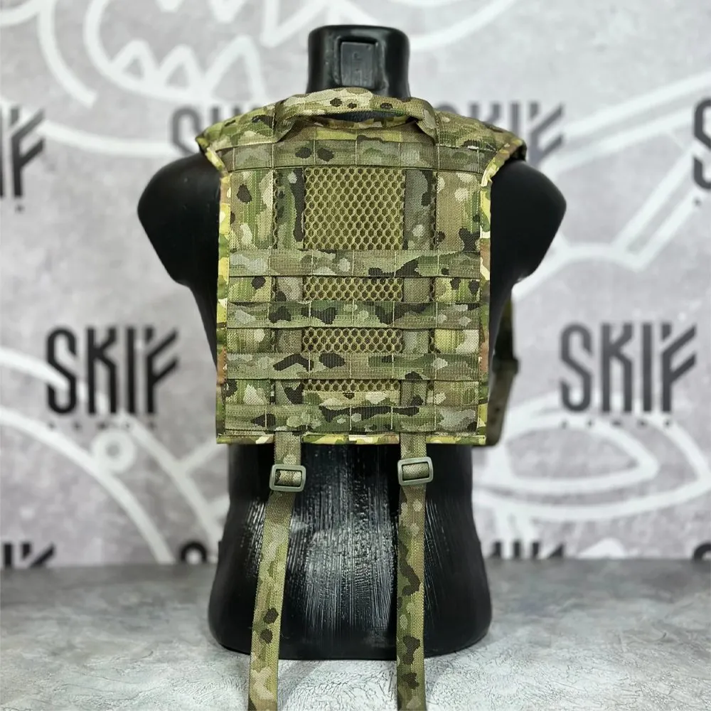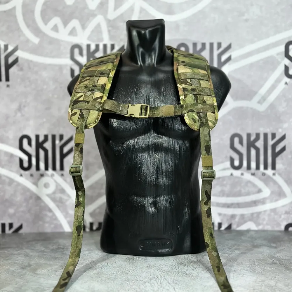 Плечевой модуль представляет собой удобную систему, состоящую из широких рюкзачных лямок и удобной спинной панели. Лямки и панель обладают MOLLE-стропами для возможности размещения дополнительного снаряжения. Сама панель имеет дышащую вставку, обеспечивающую хорошую циркуляцию воздуха.