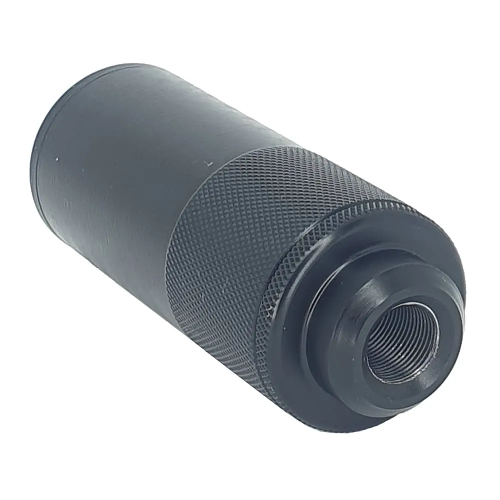 Страйкбольный глушитель от изготовителя Мастерская Дайса изготовлен из легкого и прочного алюминиевого сплава марки д16т с анодированным покрытием. Резьба М14- для установки на страйкбольные модели. Внутри полый, разборной, можно установить удлинитель стволика или трассерный блок.