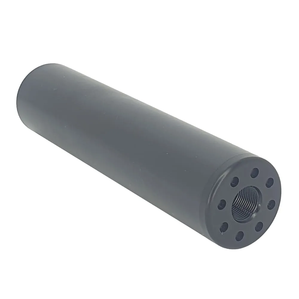 Страйкбольный двухсторонний глушитель от изготовителя Мастерская Дайса изготовлен из легкого и прочного алюминиевого сплава марки д16т с анодированным покрытием. Имеет на торцах резьбу 14м+ и 14м-. Внутри полый, разборной, можно установить удлинитель стволика или трассерный блок.