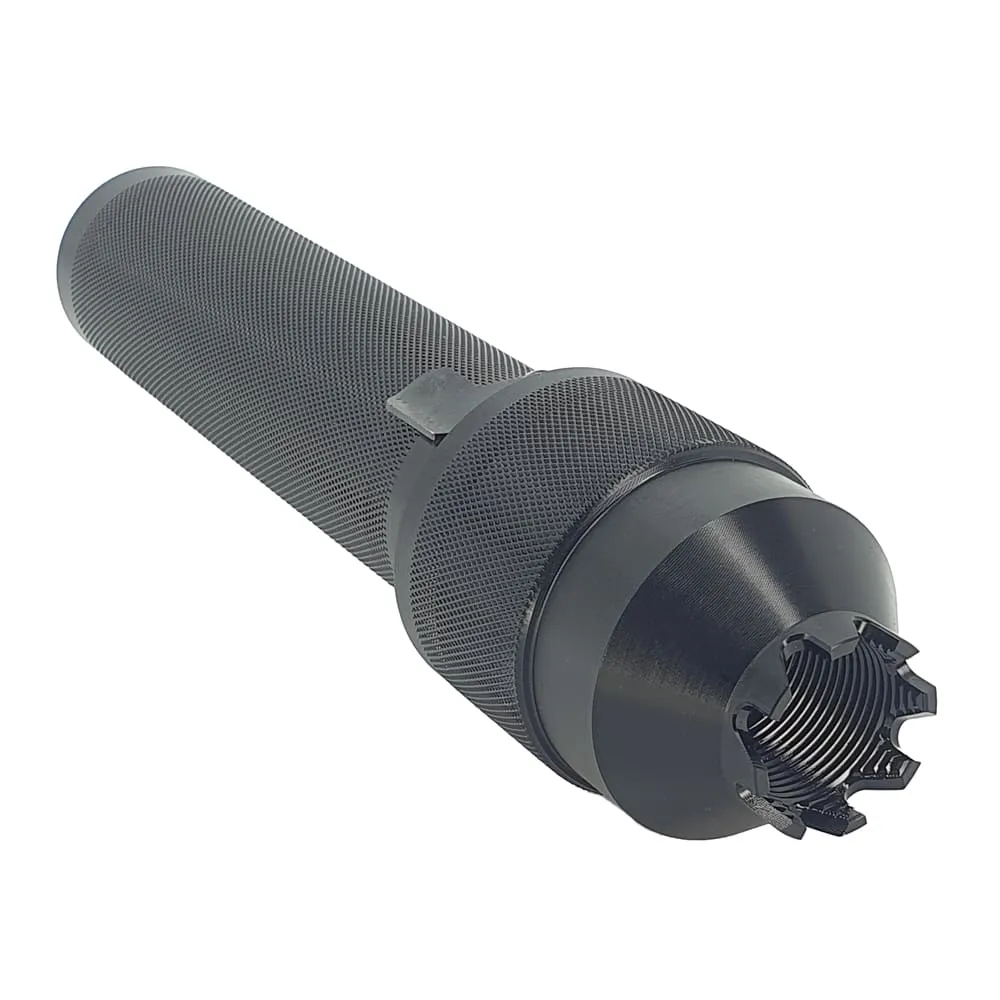 Глушитель АТГ от изготовителя Мастерская Дайса изготовлен из алюминиевого сплава марки д16т с анодированным покрытием. Резьба 24мм+ для установки на страйкбольные модели. Внутри полый, но можно установить удлинитель стволика или трассерный блок.