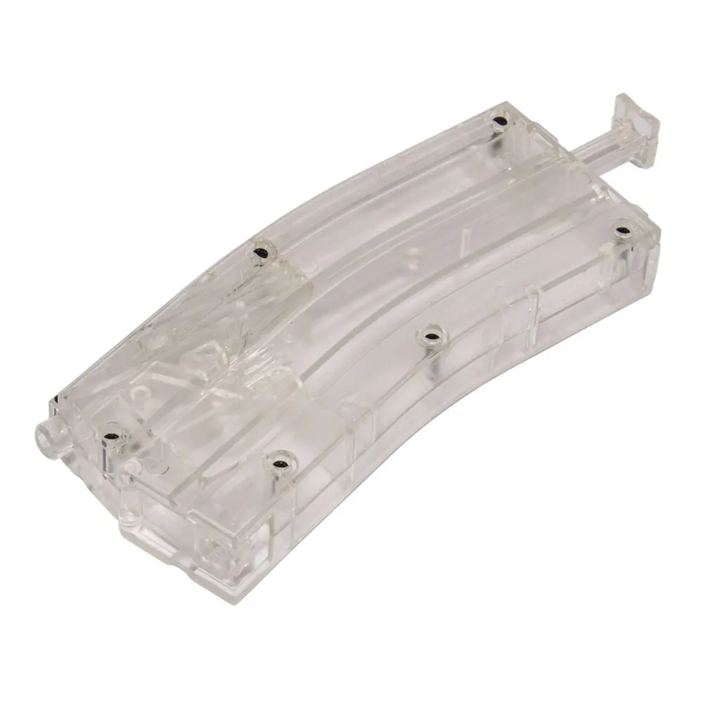Лоадер от фирмы WOSPORT для магазинов М-серии, вмещает 500 шаров. Прозрачный пластик позволяет легко контролировать остаток. Выполнен в форме магазинов для М-серии.