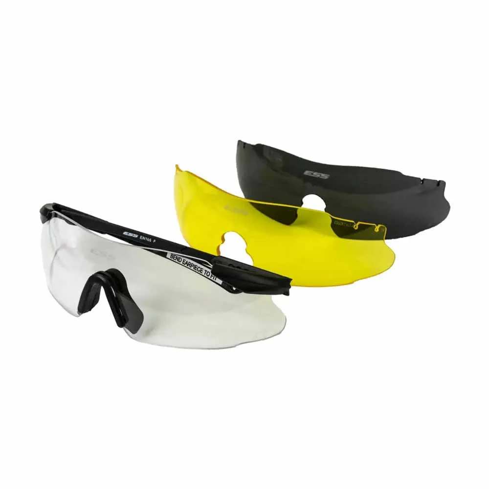 Защитные очки ESS ICE 3 выполнены из ударопрочного поликарбоната для защиты глаз от попадания страйкбольных шаров и небольших осколков. Изгиб дужек регулируются индивидуально по личным предпочтениям. В комплекте линзы трех цветов: темно-серая, желтая и прозрачная. Линзы защищают от ультрафиолета UV400.