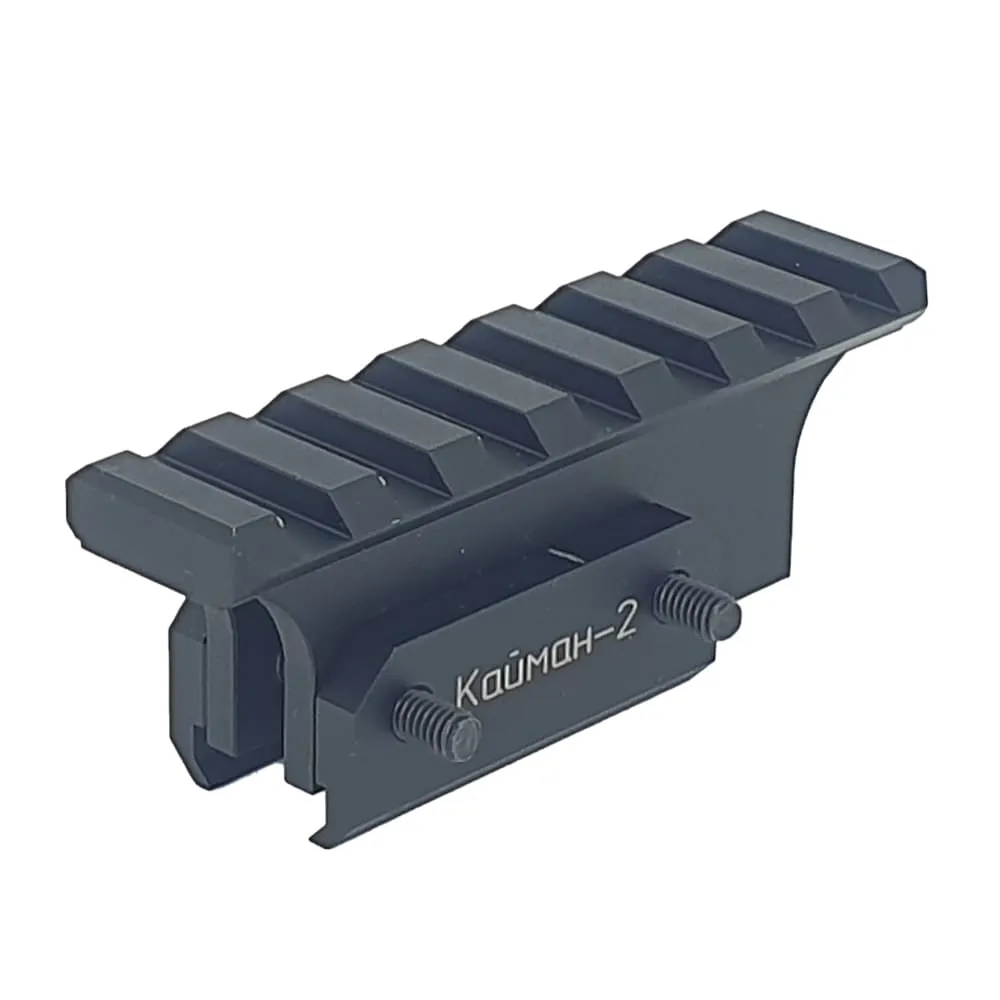 Планка Кайман-2 от Мастерская Дайса устанавливает на автоматы модели АКСУ для установки коллиматорных прицелов. Крепится за колодку целика. Сделан из алюминиевого сплава Д16Т с анодированным покрытием.